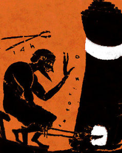 Pourquoi Héphaïstos ? Parce que, en tant que maître du feu, il est klutotechnès, c’est-à-dire renommé pour sa… technè : son savoir-faire, sa divine raison ou vue de l’esprit (nous), qui lui permet d’accomplir de produire ses œuvres de forgeron.