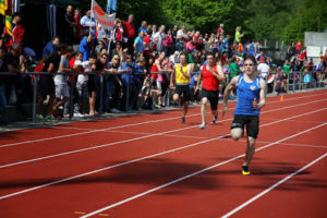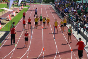 Les courses estafettes se disputent par Ă©quipe de six sur 60 m (jeunes) ou 80 m (Ă©lite) pour les courses sans tĂ©moin ; et par Ă©quipe de huit pour 2×40 m chacun pour les Ă©preuves avec tĂ©moins. Avec beaucoup de monde et de drapeaux dans les gradins pour encourager les athlètes.
