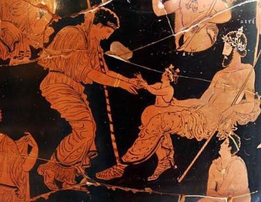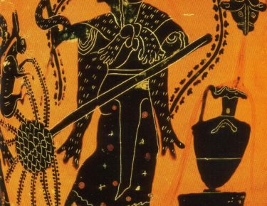 Dionysos vient d’intervenir pour la première fois explicitement dans sa cité d’origine. Après s’être fait entendre, de loin, aux bacchantes, il a fait trembler la